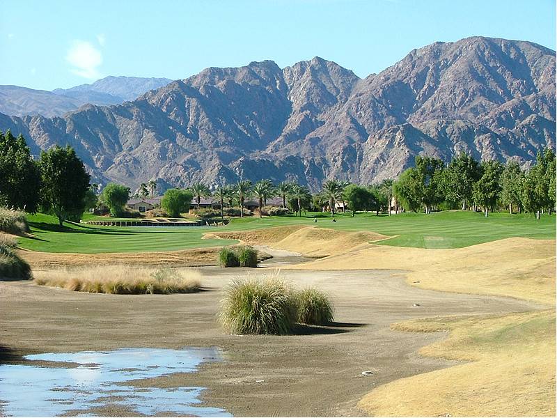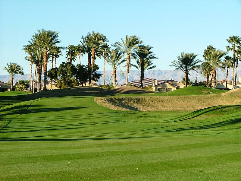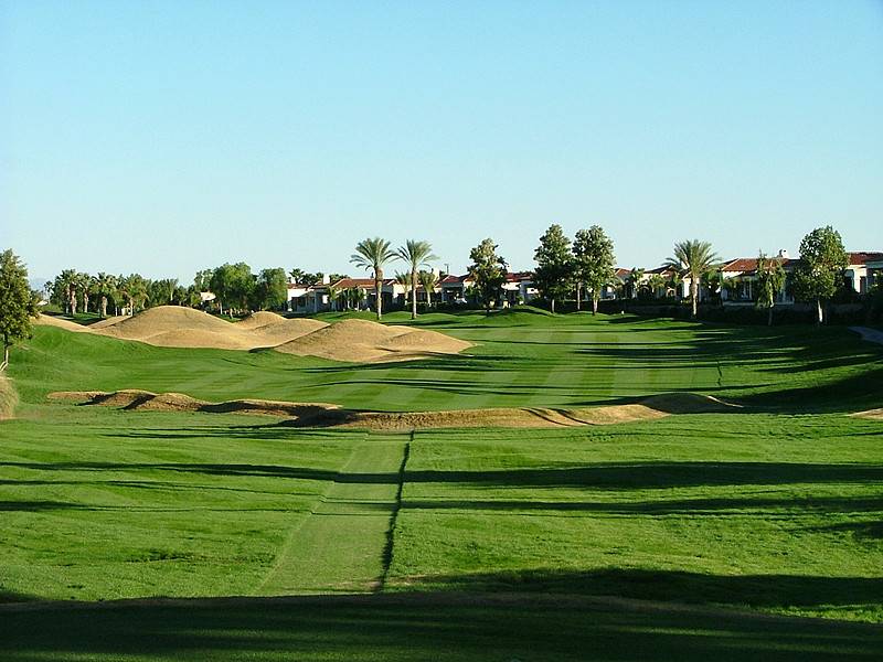 Hole 13 • Par 4 — Tee shot shapes around desert mounding; ideal angle is from the left half of the fairway.